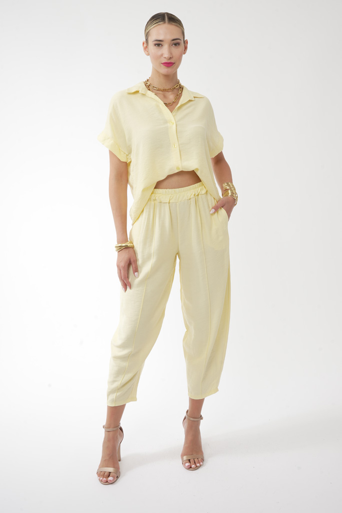 Το παστέλ κίτρινο σετ! Το απαλό, ηλιόλουστο χρώμα του είναι ιδανικό για να προσθέσει μια νότα φωτεινότητας και διακριτικής κομψότητας στις εμφανίσεις σας.