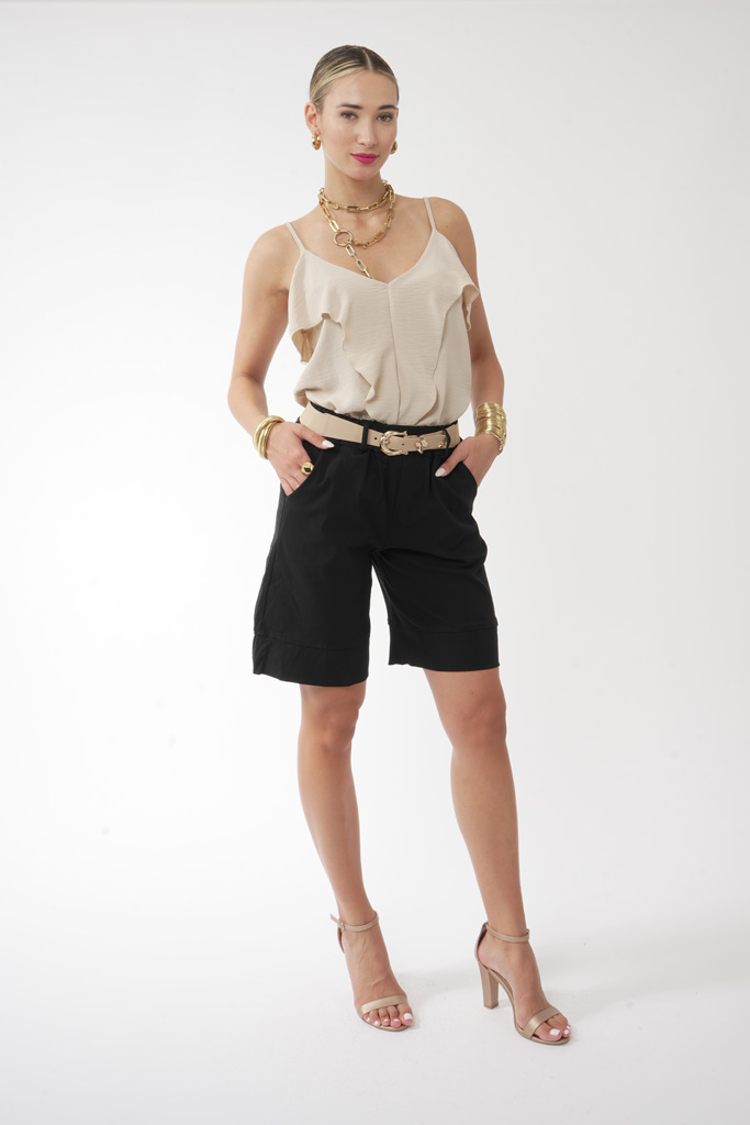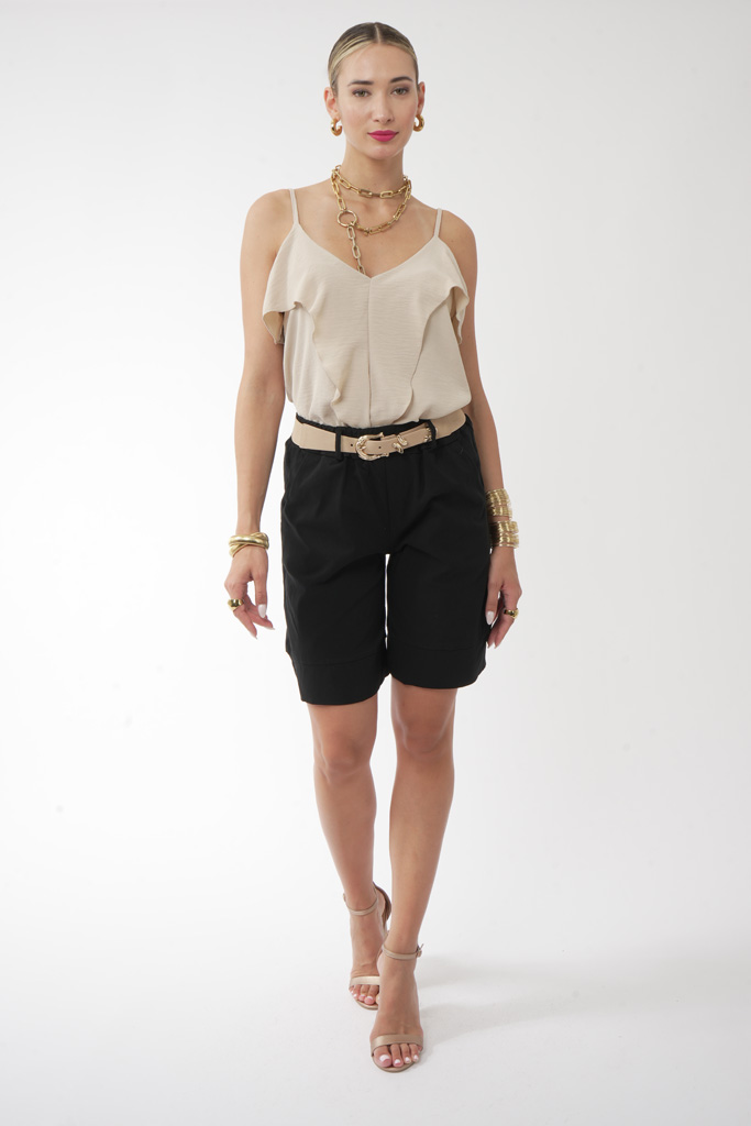 Το τοπ διαθέτει λεπτομέρειες από βολάν, που χαρίζουν κίνηση και αέρινη υφή.Το ουδέτερο μπεζ χρώμα το καθιστά ευέλικτο και εύκολο να συνδυαστεί.